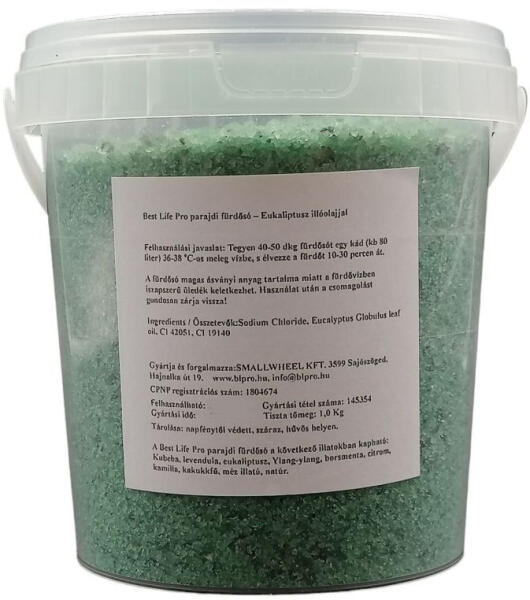 Az eukaliptusz olaj csíraölő és fertőtlenítő hatása nagyon erős, ezért használhatjuk fertőző betegségeknél. 1000 g-os parajdi fürdősó; Best Life Pro termék kádfürdőhöz.