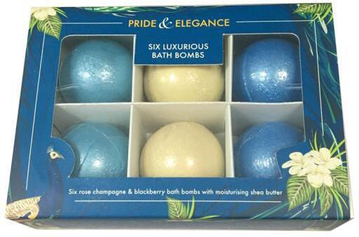 Fürdőbomba szett, 6 db-os - Büszkeség és Elegancia Fürdőbomba szett, 6 db-os - Büszkeség és Elegancia hat rózsa és szeder illatú pezsgő fürdőbomba hidratáló shea vajjal! Dobjon egy fürdőbombát a kád fürdővízbe és élvezze a pezsgő, illatos kényeztetést miközben a shea vaj ápolja és hidratálja bőrét! Anyaga: fürdősó és esszenciális olajok