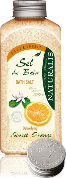 A narancs illatú méregtelenítő fürdősó tökéletesen puhítja , regenerálja a bőrt és ellazítja az elmét . Stressz ellen hat, stimulálja az izmokat , csillapítja a problémákat és a fájdalmakat. A Naturalis édes narancs összetevői: Nátrium-klorid, szilícium-dioxid, nátrium-hidrogén-karbonát, parfüm, limonén, linalool, citronellol, CI 40215.