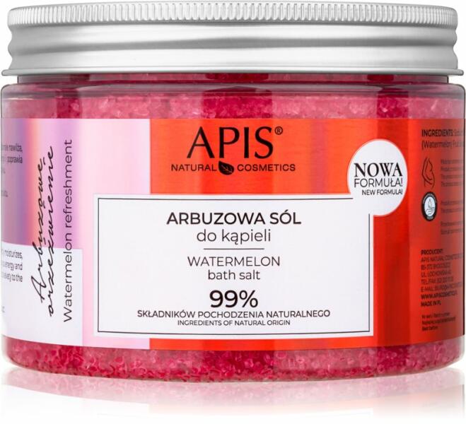 Apis Natural Cosmetics Watermelon Refreshment, 650 g, Fürdősó unisex, A kényeztető Apis Natural Cosmetics Watermelon Refreshment fürdősó kényelmet és ellazulást visz a mindennapi fürdésbe. Tulajdonságok: kellemes illatú relaxációs hatást fejt ki intenzíven hidratál regenerálja a bőrt Összetétel: legalább 99%-ban természetes eredetű összetevőket tartalmaz Használata: S