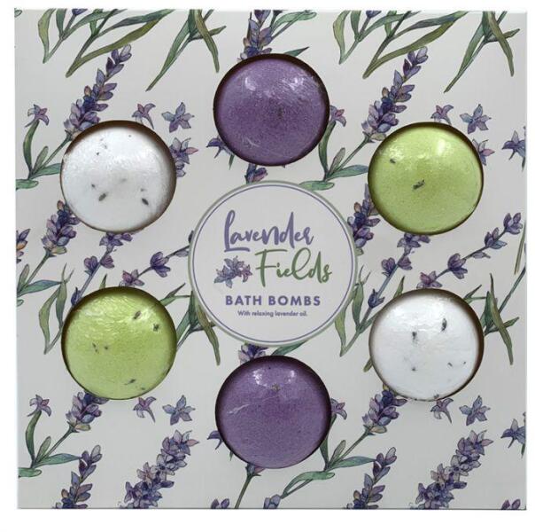 Mini Fürdőbomba Szett, 6 db-os - Levendula A Mini fürdőbomba szett, 6 db-os - Levendula fürdőgolyók nyugtató levendula olajat tartalmaznak, igy a kellemes, illatos fördő mellett nyugtatnak és a bőrt is táplálják! A csomag tartalm 6 db 70 g-os fürdőbomba/fürdőgolyó!