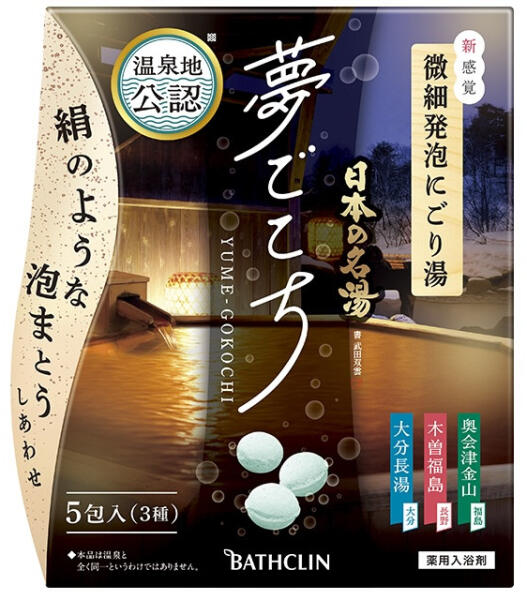 A doboz tartalma:1db BATHCLIN Fürdősó Tabletta Japán Onsenekből - Yume-Gocochi Nagayu 40g (kék)2db BATHCLIN Fürdősó Tabletta Japán Onsenekből - Yume-Gocochi Kiso 40g (rózsaszín)2db BATHCLIN Fürdősó Tabletta Japán Onsenekből - Yume-Gocochi Kaneyama 40g (zöld)Japánban közel 2500 természetes melegvizű forrás található (onsen, 温泉). Azok számára, akik arról álmodoznak,