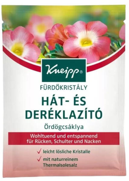 Átmelegíti az izmokat, segít az ellazulásban, egy jóleső fürdő a hátnak, a vállaknak és a nyaknak. 60 g-os fürdőkristály; Kneipp termék a tökéletes ellazulásért.