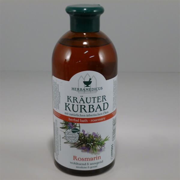 Herbamedicus fürdőolaj rozmaring 500 ml HERBAMEDICUS FÜRDŐOLAJ ROZMARING. Fürdőhöz vagy tusoláshoz is használható. A már régen igazolt rozmaringolaj ápolja a bőrt és vitalizálja is egyben. Fürdéshez csupán néhány nyomás elegendő egy kellemes fürdőhöz. Fokozhatja a helyi keringést, gyulladáscsökkentő hatása is érvényesülhet reumás eredetű fájdalmak, idegfájdalo