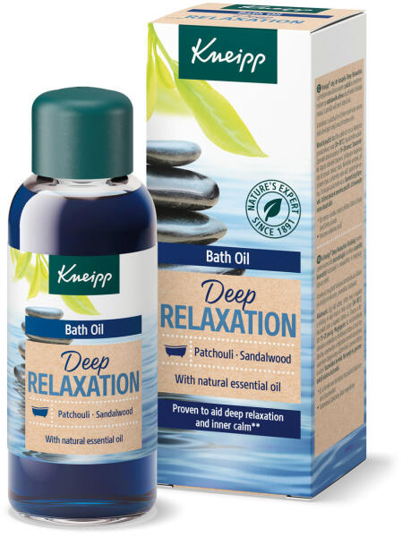 A Kneipp Mélyrelaxáló fürdőolaj természetes éterikus pacsuliolajjal és értékes szantálfa kivonattal segíti a tökéletes kikapcsolódást, megteremti a belső békét. Alkalmazás: Öntsön olajat a zárókupakba a jelzésig és adja a 36-38 fokos folyó fürdővízhez. Az optimális hatás eléréséhez 15-20 percnyi fürdőzés ajánlott. Kb. 10 teljes fürdőhöz elegendő. A termé