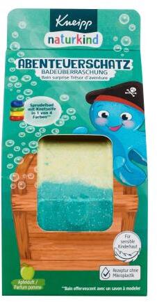 Legyen a fürdés kalandtúra! Dobja a gyermeke fürdővizébe a kalózok kincsesládáját idéző Kneipp Kids Mysterious Treasure Fizzy Bath fürdőbombát. Zöldre festi a vizet, a fürdőszoba pedig almaillattal telik meg.