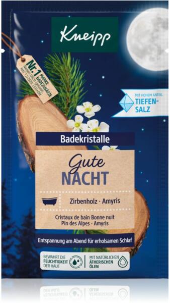 Kneipp Good Night, 60 g, Fürdősó nőknek, A kényeztető Kneipp Good Night fürdősó kényelmet és ellazulást visz a mindennapi fürdésbe. Tulajdonságok: intenzíven hidratál lágyít és finomít relaxációs hatást fejt ki nyugtató hatású Összetétel: vegán termék Használata: Szórja a meleg fürdővízbe és hagyja felolvadni. A vízben minden fontos és gyógyító hatású an