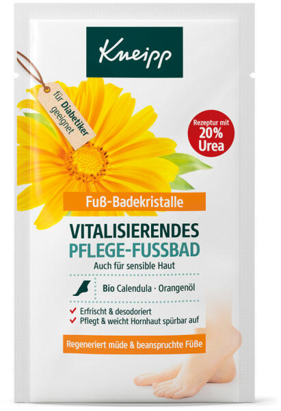 Gyengéden serkenti a vérkeringést és ápoló hatóanyagaival egy jóleső fürdő készíthető vele. Könnyen oldódó kristályok természetes termálsóval. A természetes körömvirág kivonat regenerálja a bőrt és jótékonyan ápol. A narancsolaj citrusos illata frissít és szagtalanít. A Kneipp lábápoló sók természetes tisztaságú termálsóját az Európában egyedülálló