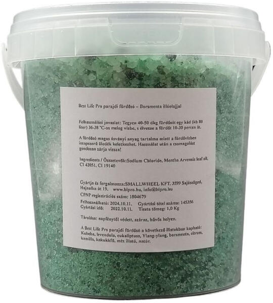 A borsmenta illóolaj fájdalomcsillapító, helyi érzéstelenítő, hüsítö és fertőtlenítő hatású. 1000 g-os parajdi fürdősó; Best Life Pro termék kádfürdőhöz.