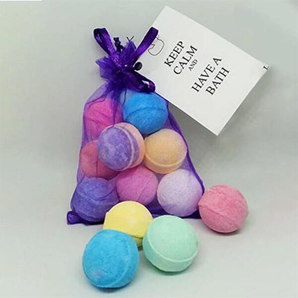 A fürdőbombák pezsegve oldódnak fel, illatossá varázsolják a fürdővizet és élménnyé a fürdőzést. A bombák súlya körülbelül 14 gramm. 10 kellemes fürdéshez elegendő a csomag. Remek ajándék is lehet. Tulajdonságok: A csomag tartalma: 10 db fürdőbomba Jelenleg ezeket az illatokat tartalmazza a csomag: Levendula, Mangó, Eper, Áfonya és Cseresznye. 1 db organza tasak Át