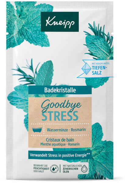 Kneipp Goodbye Stress fürdősó vízimentával és rozmaringgal. Alkalmazás: A tasak feltépése után, öntsd a fürdőkristályt a 36-38 fokos fürdővízbe és várj, amíg feljesen feloldódik! Az optimális hatás eléréséhez 10-20 percnyi fürdőzés ajánlott. 1 fürdéshez elegendő. A kristály ne kerüljön kapcsolatba érzékeny felületű tárgyakkal! A termék előnyei: Jótékony