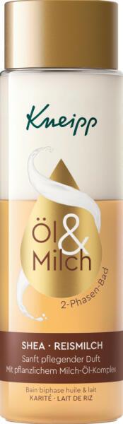 Két fázisú kényeztető fürdőolaj a bőr rugalmasságáért: Krémfehér és tiszta olaj keveréke tisztító és gyengéd ápoló hatással. Értékes shea vajjal és növényi rizstejjel. Gyengéden krémes illattal a bársonyosan puha bőrért.