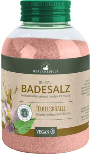 Herbamedicus fürdősó ördögkarom 575 g Herbamedicus fürdősó ördögkarommal és értékes gyógynövényekkel, amelyek a bőrt ellátják szükséges ásványi anyagokkal. Az ördögkarom jótékony hatása élénkíti az izmokat, ugyanakkor megnyugtató érzést kölcsönöz. Öntsön 1-2 kupaknyi Herbamedicus fürdősót folyó víznél a kádba, és hagyja feloldódni. A fürdési idő n