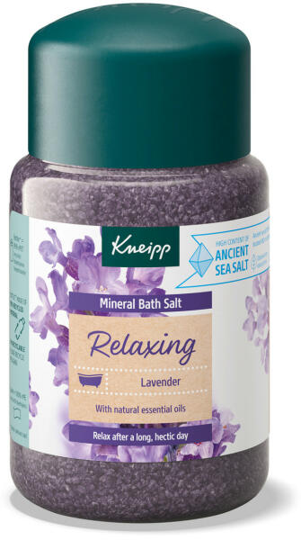 Élvezze a nyugodt fürdőt a Kneipp Levendula fürdősóval, mely segíti az elméd és tested ellazulását. A Kneipp Lavender fürdősó nagy mennyiségű illóolajat tartalmaz, amely táplálja és hidratálja a bőrt, megnyugtat és elősegíti az egyensúlyt. A Kneipp fürdősók természetes tisztaságú termálsóját az Európában egyedülálló Saline Luisenhall ősi eredetű sókészle
