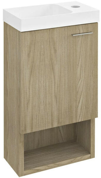 Laufen Base világos szil alsószekrény 41,5x51,5x32,1 cm balos ajtóval H4021111102621 Laufe Pro S H815961 mosdó variációihoz Telepítés: fali, lábbal kiegészíthető Súly: 11,5 kg Alapanyag: farostlemez Felület: CPL fólia és ABS élek Szín: világos szil Méret: 41,5x32,1x51,5 cm Kivitel: egy ajtóval (zsanér a bal oldalon ) Fékezett záródással (soft-close mechanizmus) Integrál