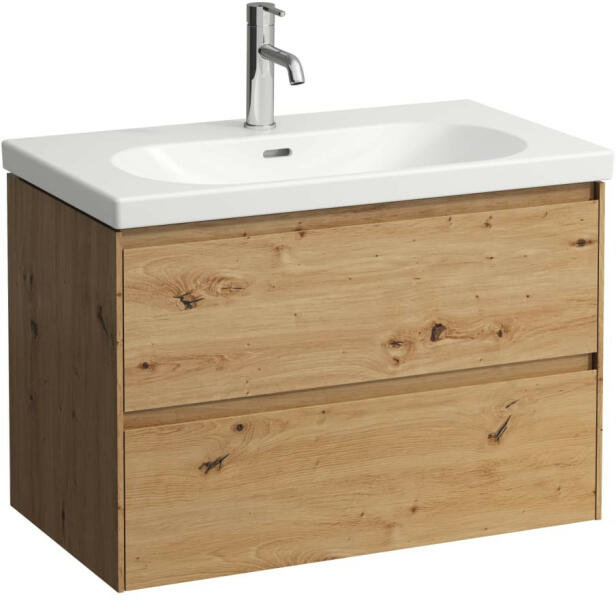Laufen Lani tölgy színű alsószekrény 78,4x44,2x51,5 cm, két fiókkal H4035521122671 Laufen H8100870001041, H8100870001041 és H8103360001041 mosdó variációihoz Telepítés: falra Súly: 29 kg Alapanyag: MDF 19 mm-es Szín: tölgy Felület: PVC fólia Méret: 78,4x44,2x51,5 cm Kivitel: dupla fiók Fiókok belső színe: antracit Integrált fogantyúval, fékezett záródással (soft-close