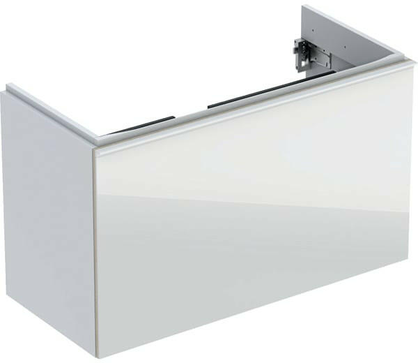 Geberit Acanto alsó szekrény mosdóhoz, egy fiókkal egy belső fiókkal rövidített kivitel 90 cm magasfényű fehér/fényes fehér üveg (500.616. 01.2) Tulajdonságok Falra szerelhető Egy fiókkal Egy belső fiókkal Fogantyú a nyitáshoz Fiók behúzósínnel Rövidített kivitel Nedvességtűrő Előlap farostlemezből üvegburkolattal Előszerelve szállított Műszak i adatok Alapanya