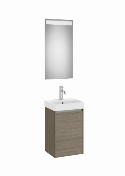 Roca Ona Pack mosdószekrény mosdóval és tükör LED világítássa Sötét Szil A851695511 Ona termékcsalád egyszerű, mint a természet. Funkcionális anélkül, hogy hidegnek tűnne, tiszta esztétikája, amely követi a természeti környezet eredendő melegét. Azoknak készült, akik élvezik a csendes tájak erejét. Alsószekrény tulajdonságai: Gar ancia: 2 év Telepítés: falra Ma