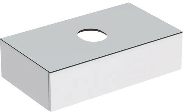 Geberit VariForm alsó szekrény pultra ültethető mosdóhoz 90x51 cm, 1 fiókkal, pakolófelülettel, magasfényű fehér 501.165. 00.1 Tulajdonságok Méretek: 90x23,5x51 cm Szélesség: 90 cm Test és előlap: fehér/magasfényű bevonat Takarólap: fehér/matt melaminbevonatú Alapanyag: nagy tömörségű háromrétegű farostlemez Alkalmas minden VariForm pultra ültethető mosdóhoz Falra