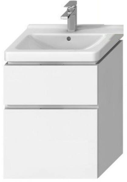 Laufen Lani fényes fehér alsószekrény 78,4x44,2x51,5 cm, két fiókkal H4035521122611 Laufen H8100870001041, H8100870001041 és H8103360001041 mosdó variációihoz Telepítés: falra Súly: 29 kg Alapanyag: MDF 19 mm-es Szín: fényes fehér Felület: lakkozott Méret: 78,4x44,2x51,5 cm Kivitel: dupla fiók Fiókok belső színe: antracit Integrált fogantyúval, fékezett záródással (soft