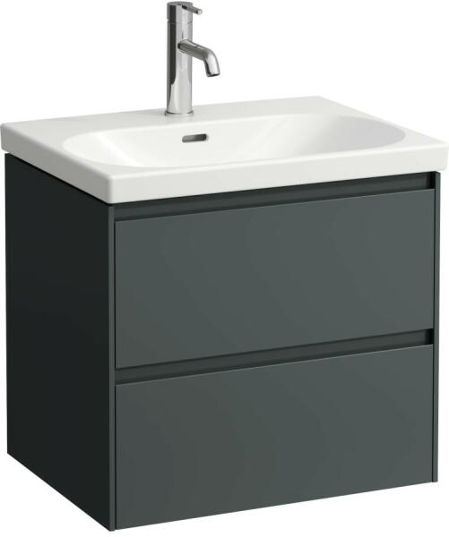 Laufen Lani antracit alsószekrény 58,4x44,8x51,5 cm két fiókkal H4035321122661 Laufen Lua H8100830001041 és Laufen Living H8174330001041 mosdó variációihoz Telepítés: falra Súly: 24 kg Alapanyag: MDF 19 mm-es Felület: lakkozott Szín: antracitszürke 58,4x44,8x51,5c m Kivitel: dupla fiók Fiókok belső színe: antracit Integrált fogantyúval, fékezett záródással (soft-close mecha
