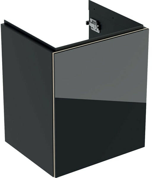 Geberit Acanto alsó szekrény kézmosóhoz, egy ajtóval 45 cm matt láva/fényes láva üveg (500.608. JK. 2) Tulajdonságok Falra szerelhető Egy ajtóval Push-to-open mechanizmus a nyitáshoz Ütközőoldal bal vagy jobb Nedvességtűrő Előlap farostlemezből üvegburkolattal Előszerelve szállított Műszak i adatok Alapanyag : Nagy tömörségű háromrétegű farostlemez Szállítási te