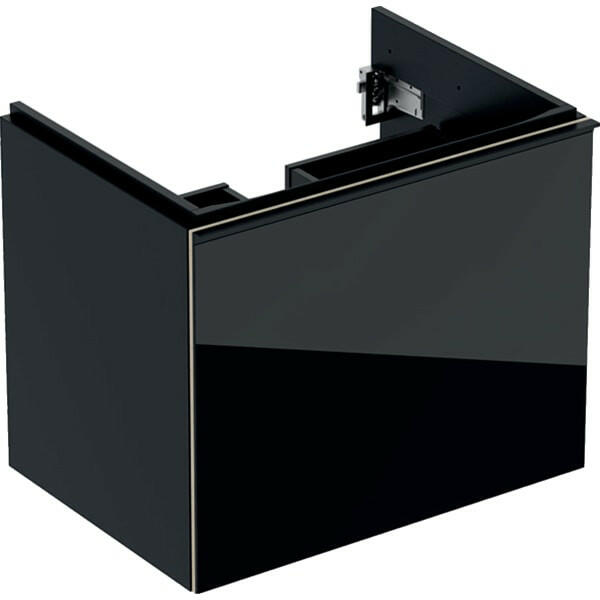 Geberit Acanto alsó szekrény mosdóhoz, egy fiókkal egy belső fiókkal 65 cm matt fekete/fényes fekete üveg (500.610. 16.1) Tulajdonságok Falra szerelhető Egy fiókkal Egy belső fiókkal Fogantyú a nyitáshoz Fiók behúzósínnel Nedvességtűr Előlap farostlemezből üvegburkolattal Előszerelve szállított Műszak i adatok Alapanyag : Nagy tömörségű háromrétegű farostlemez Sz