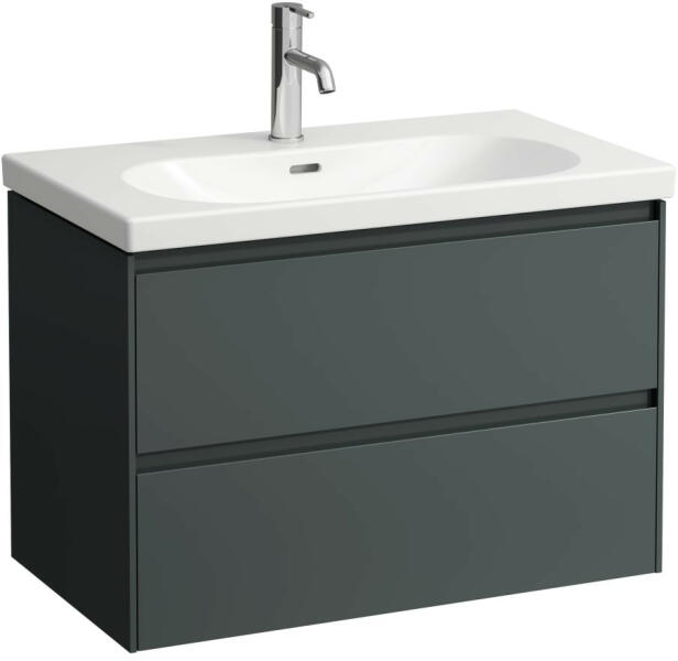 Laufen Lani antracit alsószekrény 78,4x44,2x51,5 cm, két fiókkal H4035521122661 Laufen H8100870001041, H8100870001041 és H8103360001041 mosdó variációihoz Telepítés: falra Súly: 29 kg Alapanyag: MDF 19 mm-es Szín: antracitszürke Felület: lakkozott Méret: 78,4x44,2x51,5 cm Kivitel: dupla fiók Fiókok belső színe: antracit Integrált fogantyúval, fékezett záródással (soft-clos
