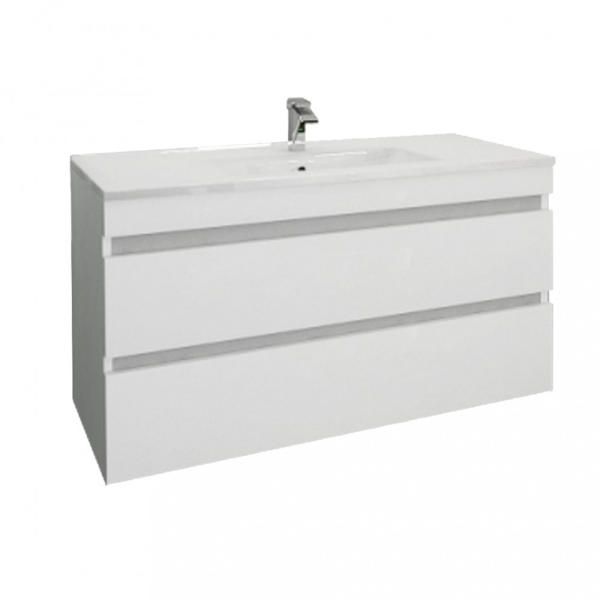 Nina 120 komplett fürdőszoba bútor szett, 15 mm vastag MDF korpusz magasfényű lakkozott fehér felülettel, 18 mm vastag MDF front lakkozott fehér felülettel, soft close fiókrendszerrel, króm fogantyúval. Lapraszerelve szállítjuk. Termékjellemzők Mosdó mérete 120x46x1,5/17,3 cmFali tükör mérete 120x55 cmMérete 119x45x55 (sz, ma, mé)Garanica 1 év Termékleírás Öntött műm