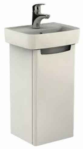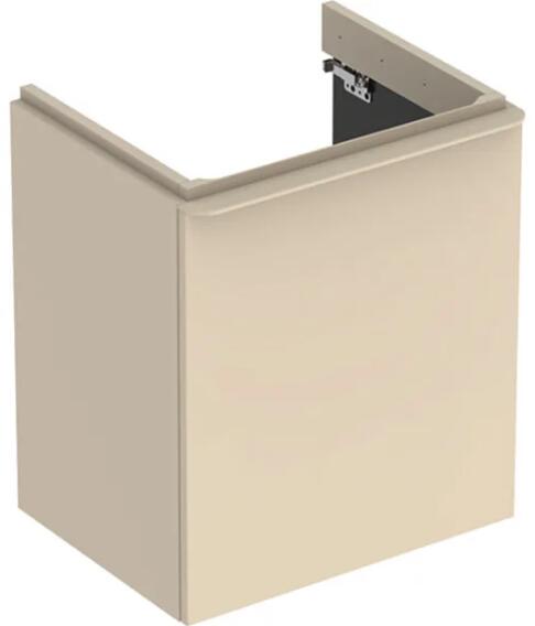 Geberit Smyle Square alsó szekrény kézmosóhoz ajtóval 53,6x43,3 cm, magasfényű homokszürke 500.366. JL. 1 Alapanyag: nagy tömörségű háromrétegű farostlemez Falra szerelhető Méret: 53,6x61,7x43,3 cm Szélesség: 53,6 cm Egy ajtóval Balra nyíló Fogantyú a nyitáshoz Ajtó csillapítómechanizmussal Nedv ességtűrő Egy áthelyezhető polccal Szín: homokszürke / magasfényű b