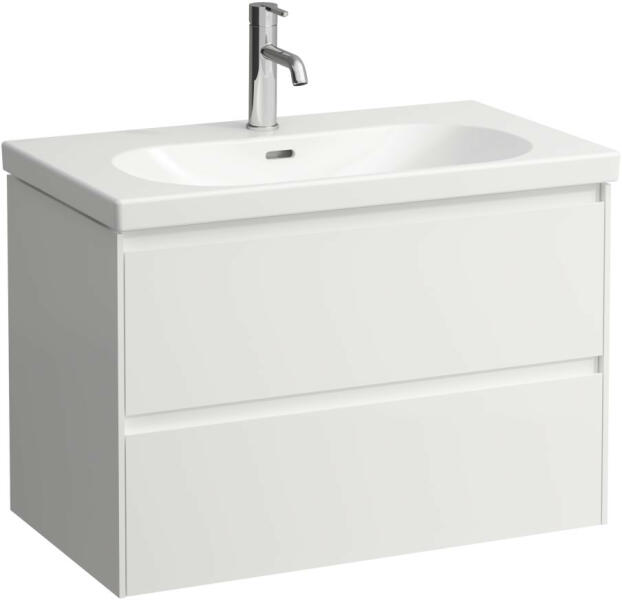 Laufen Lani matt fehér alsószekrény 78,4x44,2x51,5 cm, két fiókkal H4035521122601 Laufen H8100870001041, H8100870001041 és H8103360001041 mosdó variációihoz Telepítés: falra Súly: 29 kg Alapanyag: MDF 19 mm-es Szín: matt fehér Felület: lakkozott Méret: 78,4x44,2x51,5 cm Kivitel: dupla fiók Fiókok belső színe: antracit Integrált fogantyúval, fékezett záródással (soft-close