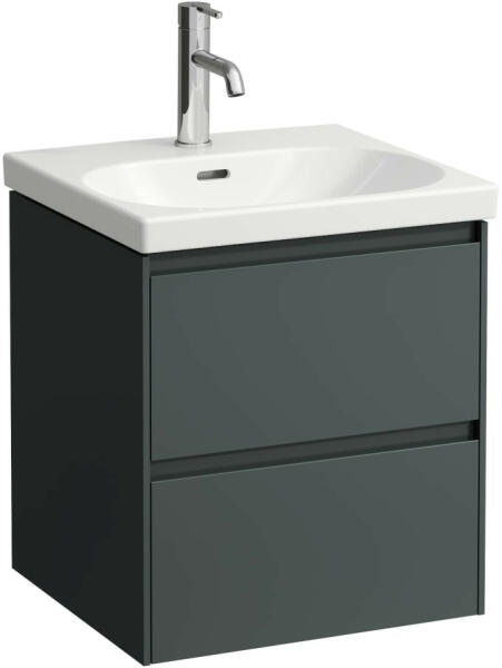 Laufen Lani antracit alsószekrény 48,2x44,8x51,5cm, két fiókkal H4035121122661 Laufen Lua H8100810001041 mosdó variációihoz Telepítés: falra Alapanyag: MDF (19 mm-es) fóliázott Súly: 22 kg Felület: lakkozott Szín: antracitszürke Méret: 48,2x44,8x51,5 cm Kivitel: dupla fiók Beépített fogantyúval, fékezett záródással Szerelőkészlett el A mosdó nem tartozék.