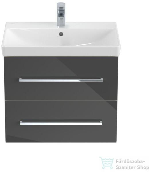 Villeroy & Boch Subway Avento alsószekrény Crystal Grey A88900B1 A mosdó nem tartozék! Külön szükséges megvásárolni! Kompatibilis mosdó Villeroy 4158 60 Fali szerelés Két fiók lassú záródással Front MDF akril réteggel Fényes króm fogantyú