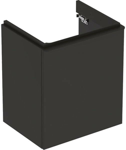 Geberit Smyle Square alsó szekrény kézmosóhoz ajtóval 53,6x43,3 cm, matt lakkozott láva 500.365. JK. 1 Alapanyag: nagy tömörségű háromrétegű farostlemez Falra szerelhető Méret: 53,6x61,7x43,3 cm Szélesség: 53,6 cm Egy ajtóval Jobbra nyíló Fogantyú a nyitáshoz Ajtó csillapítómechanizmussal Nedv ességtűrő Egy áthelyezhető polccal Szín: láva / matt bevonat Fogantyú sz