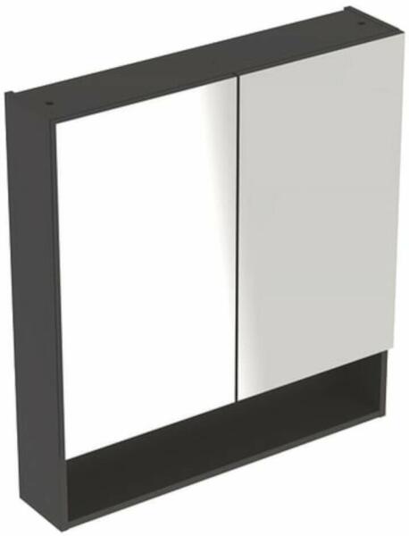 Geberit Selnova Square 2 ajtós tükrös szekrény 78,8x85 cm, matt láva 501.269. 00.1 Alapanyag: nagy tömörségű háromrétegű farostlemez Súly: 31 kg Méretek:78,8x85x17,5 cm Szélesség: 78,8 cm Telepítés: falra szerelhető Két ajtóval Nyitott pakolófelülettel Ajtó csillapítómechanizmussal Nég y áthelyezhető üvegpolc Állítható sarokpántok Előszerelve szállított Szín:
