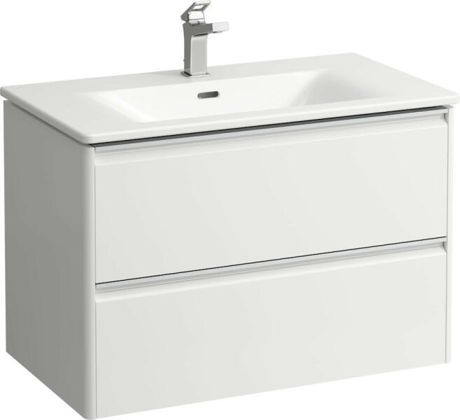Laufen Palace 2 fiókos alsószekrény mosdóval 80x45 cm, fényes fehér H8607052611041 Szerelés: falra Mosdó méret: 80x45 cm Szekrény méret: 78,3x43,8 cm Teljes magasság: 54,5 cm Vékony mosdó alsószekrénnyel Mosdó alapanyaga: kerémia 1 Csaplyukkal 2 fiókkal Soft Closing rendszerrel, fiók rendezővel Eloxált alumínium fogantyúval ( korróziónak ellenálló oxidréteg ) Hagyomán