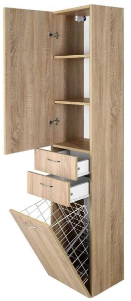 Aqualine Zoja állószekrény fiókkal, szennyeskosárral, 35x184x29cm, platina tölgy Fürdőszobai, 3in1 polcos és fiókos állószekrény szennyestartóval. ZOJA és KERAMIA FRESH bútorokkal kombinálható. Magas kivitel. Modern, szögletes vonalvezetés Jellemző i: Alapanyaga sonoma tölgy színű bútorlap A felső szekrény 2 db polccal rendelkezik, alatta pedig 2 db fiók került kialak