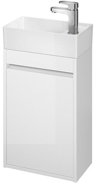 Cersanit Crea 1 ajtós fali szekrény és kerámia mosdóval 40x22 cm, fényes fehér S801-276A rejtett fogantyús fiókok elülső részeit és a szekrénytestet fényes fehér lakk borítja, a mosdókagylón túlfolyó és lyuk a csap számára. A szekrény előlapja és váza nedvességálló forgácslapból készült, köszönhetően az AQUASAFE technológia használatának, amely hosszú éve