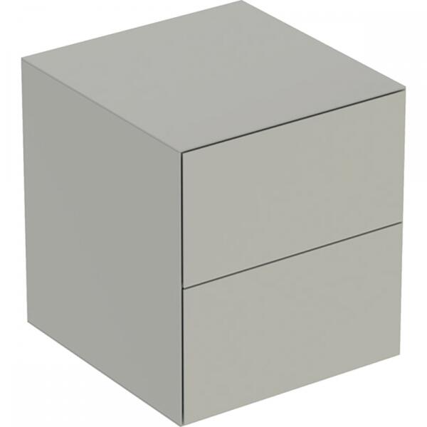 Geberit One oldalsó szekrény két fiókkal 45x47 cm, matt greige 505.077. 00.7 Tulajdonságok Méretek: 45x49,2x47 cm Szélesség: 45 cm Mélység: 47 cm Szín: matt greige Alapanyag: nagy tömörségű háromrétegű farostlemez Falra szerelhető Két fiókkal Push-to-open mechanizmus a nyitáshoz Fiók behúzósínnel Nedvességtűr Előszerelve szállított A Geberit One széria mosdószekré