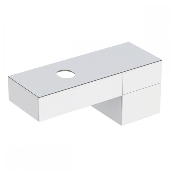 Geberit VariForm alsó szekrény pultra ültethető mosdóhoz 135x51 cm, 3 fiókkal, pakolófelülettel, magasfényű fehér 501.189. 00.1 Tulajdonságok Méretek: 135x55x51 cm Szélesség: 135 cm Test és előlap: fehér/magasfényű bevonat Takarólap: fehér/matt melaminbevonatú Alapanyag: nagy tömörségű háromrétegű farostlemez Alkalmas minden VariForm pultra ültethető mosdóhoz Falra