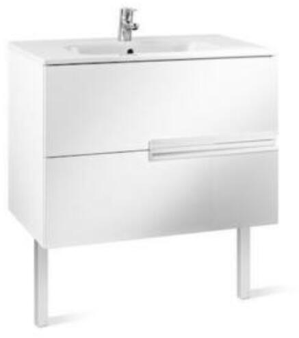 Roca Victoria-N Unik alsószekrény mosdóval 80 cm magasfényű fehér A855832806 Méret: 80x46x56,5 cm 2 fékezett záródású fiók Kerámia mosdó, csaplyukkal, túlfolyóval Opcionálisan rendelhető: bútorláb, törölközőtartó Csaptelep és leeresztő nélk&