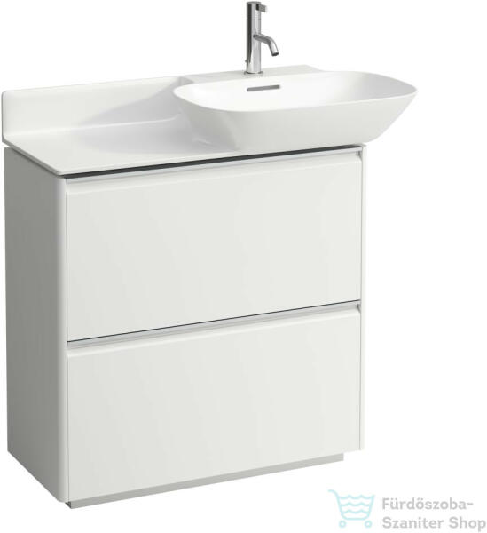 Laufen Base fényes fehér alsószekrény 77x35x78 cm kettő fiókkal H4030021102611 Laufe Ino H813301 és 813302 mosdó variációihoz Telepítés: álló Súly: 36 kg Alapanyag: MDF Felület: PET fólia és ABS élek Szín: fényes fehér Méret: 76,9x34,8x76,8 cm Kivitel: kettő fiókkal (teljesen kihúzható) Fékezett záródással (soft-close mechanizmus) Integrált alumínium fogantyú Foga