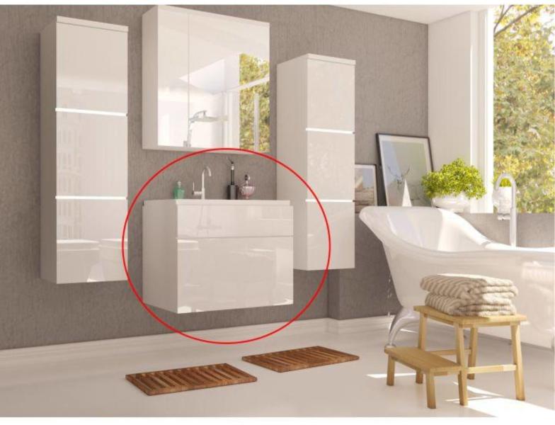 MASON WH 13, mosdó alatti szekrény, Változat: fehér/fehér magas fényű hg Anyag: MDF/DTD laminált Mérete: (Szé/Mé/Ma): 60x47x45 cm Hozzávásarolható dolomit mosdó UM ECCE 610: (SzéxMaxMé): 61x14x45 cm