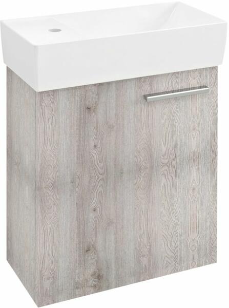 SAPHO Latus IX mosdótartó szekrény 44x50x22 cm, balos/jobbos, mokka tölgy LT090-1212 Garancia: 24 hónap Jótállás: 2 év Anyag: MDF/laminált Súly: 8 kg Fogantyúval ellátva Méret: 44x50x22 cm Szélesség: 440 mm Magasság: 500 mm Mélység: 220 mm Az ajtó jobb és bal irányba is felszerelhető Lassító zsanérral ellátva Falra szerelhető Szín: mokka tölgy A mosdó külön rendelh