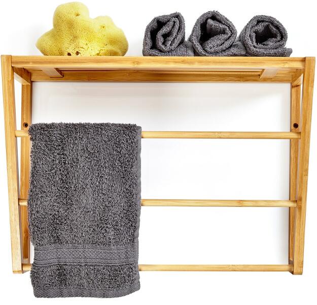A rend nagyon fontos az életben - különösen a fürdőszobában. Mivel a fürdőszoba a szépség, gondoskodás és a pihenés helye. A Klarstein bambuswald fürdőszobai polcon mindennek megvan a saját helye, a tusfürdőtől kezdve a szivacson át egészen a zsilettpengéig és a smink kellékekig. A három rúdnak köszönhetően optimálian kisimítva tudja felakasztani a törülközőket,