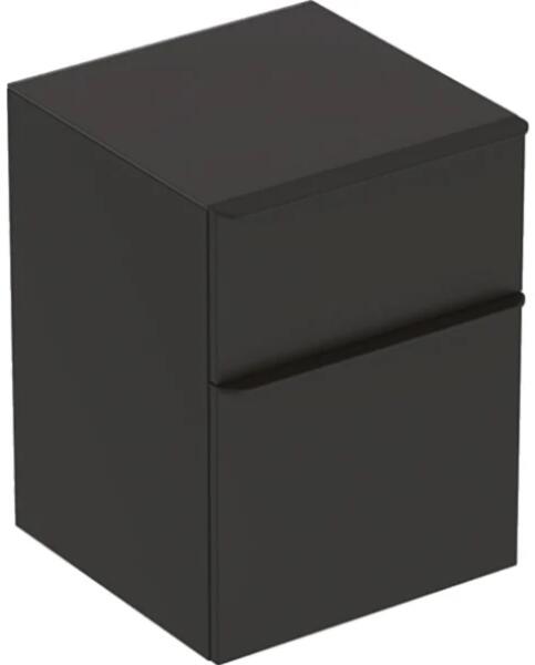 Geberit Smyle Square kiegészítő szekrény 45x60 cm, matt lakozott láva 500.357. JK. 1 Alapanyag: nagy tömörségű háromrétegű farostlemez Méretek: 45x60x47 cm Foganytú színe: láva / matt porbevonatos Falra szerelhető Mosdószekrénnyel összeépíthető Két fiókkal Fogantyú a nyitáshoz Fiók behúzósínnel Nedvességtűr Fém fiókkeret Üveg takarólap Oldalszekrény Rögzítő