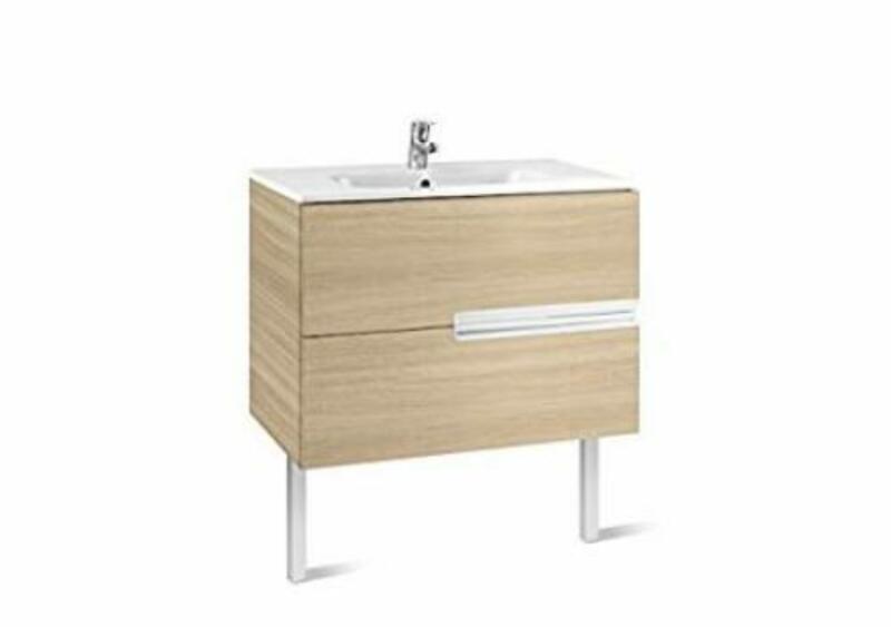 Roca Victoria-N Unik alsószekrény mosdóval 100 cm tölgy A855831155 Méret: 100x46x56,5 cm 2 fékezett záródású fiók Kerámia mosdó, csaplyukkal, túlfolyóval Opcionálisan rendelhető: bútorláb, törölközőtartó Csaptelep és leeresztő nélkül