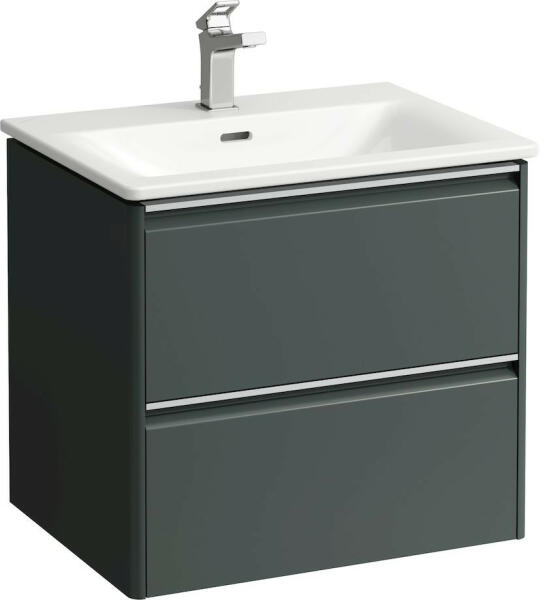 Laufen Palace 2 fiókos alsószekrény mosdóval 60x45 cm, traffic grey H8607022661041 Szerelés: falra Mosdó méret: 60x45 cm Szekrény méret: 57,9x43,8 cm Teljes magasság: 54,5 cm Vékony mosdó alsószekrénnyel Mosdó alapanyaga: kerémia 1 Csaplyukkal 2 fiókkal Soft Closing rendszerrel, fiók rendezővel eloxált alumínium fogantyúval ( korróziónak ellenálló oxidréteg ) Hagyományo