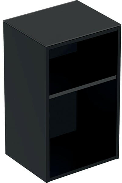 Geberit Smyle négyzet alakú oldalsó szekrény Open anyag: erősen tömörített háromrétegű forgácslap Design: láva/lakk matt Méret: 360 x 600 x 299 mm (szélesség/nyílás/hosszúság) Lógó 1 állítható polccal üveg fedőlap nedvesség ellen kezelt kombinálható egy közepes szekrénnyel, hogy magas szekrényt hozzon létre összeszerelve szállítva beleértve a rögzítőanyago