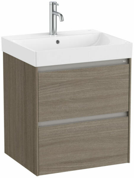 Roca Ona 2 fiókos alsószekrény 55x46x64,5 FineCeramic mosdóval Sötét Szil A851687511 Ona termékcsalád egyszerű, mint a természet. Funkcionális anélkül, hogy hidegnek tűnne, tiszta esztétikája, amely követi a természeti környezet eredendő melegét. Azoknak készült, akik élvezik a csendes tájak erejét. Alsószekrény tulajdonságai: Gar ancia: 2 év Telepítés: falra Magass